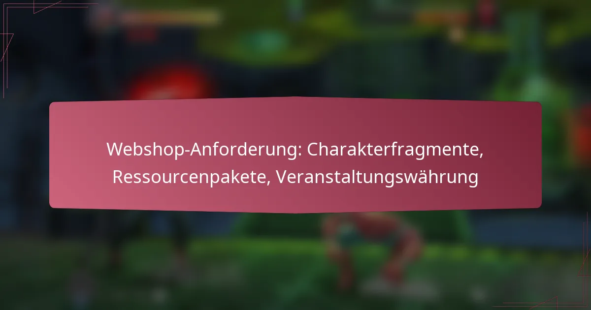 Webshop-Anforderung: Charakterfragmente, Ressourcenpakete, Veranstaltungswährung